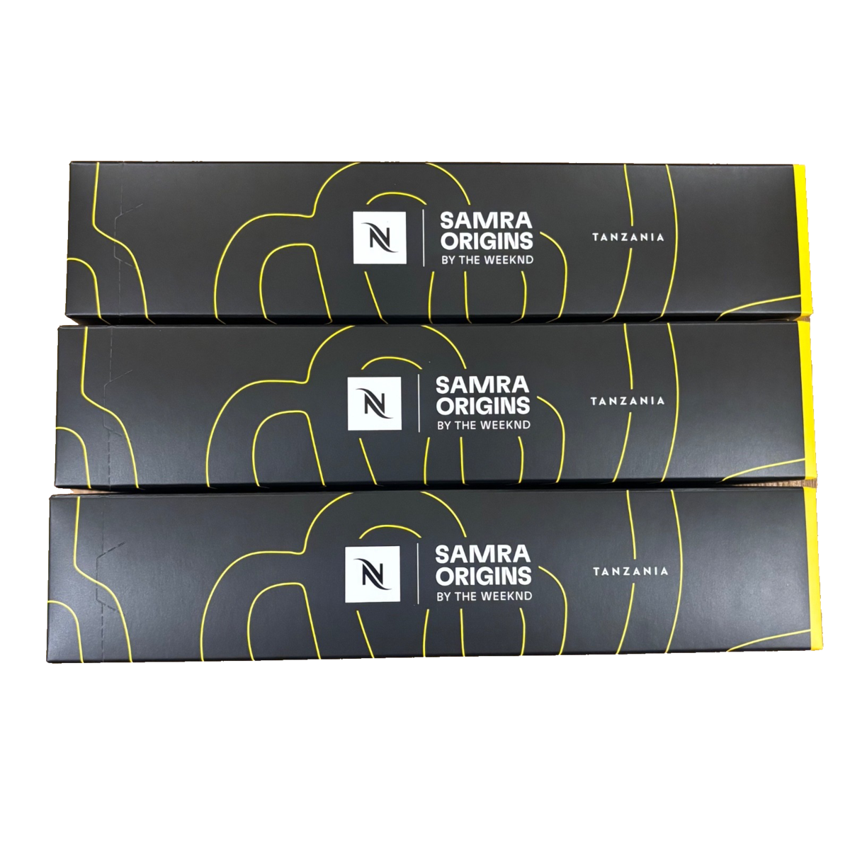 Nespresso Vertuo Samra Origins by The Weeknd Tanzania Limited Edition Pods, 30ct, Double Espresso. Intensity 5. Brews 2.7 oz. 3 sleeves, 10 pods per sleeve.