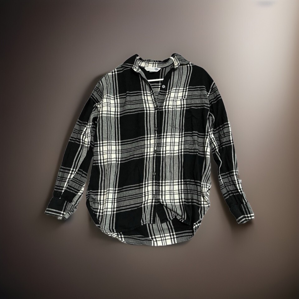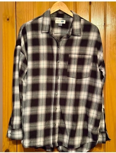 Old Navy Boyfriend Black White Plaid Shirt Women’s Small Grunge Outdoor Style