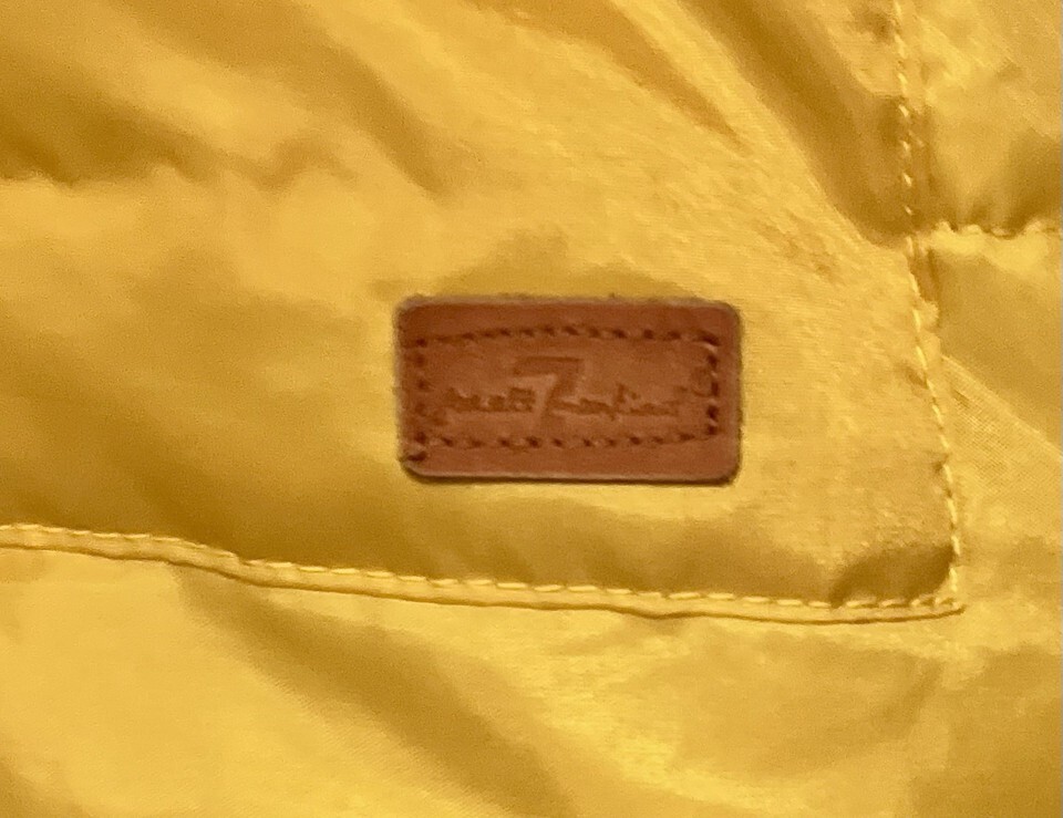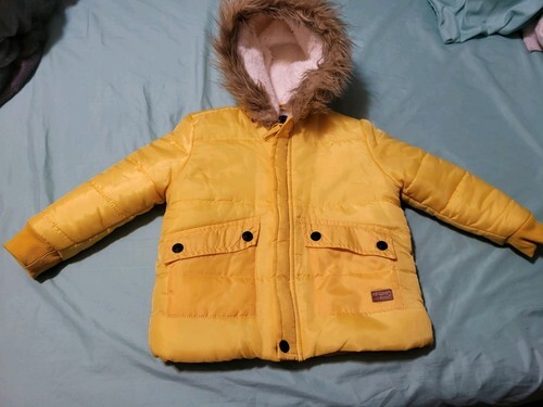 This is a lovely little puffer coat from 7 for all mankind! The gold jacket has full zipper, two Velcro pockets and a Sherpa-lined hood with faux fur trim!