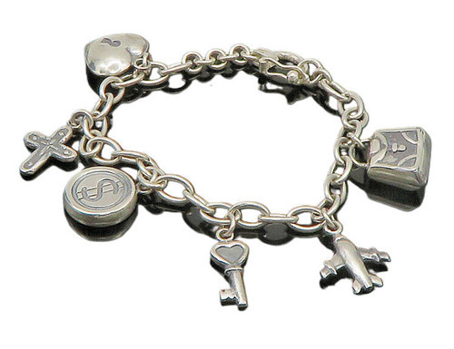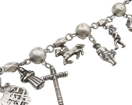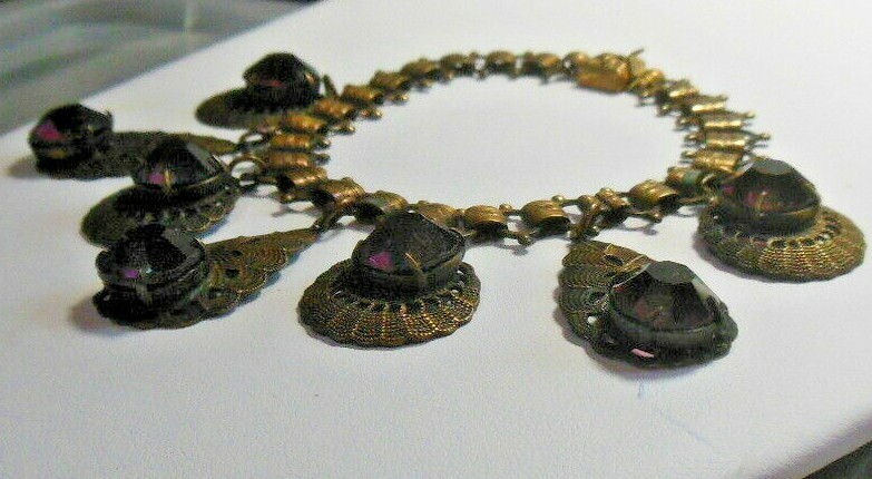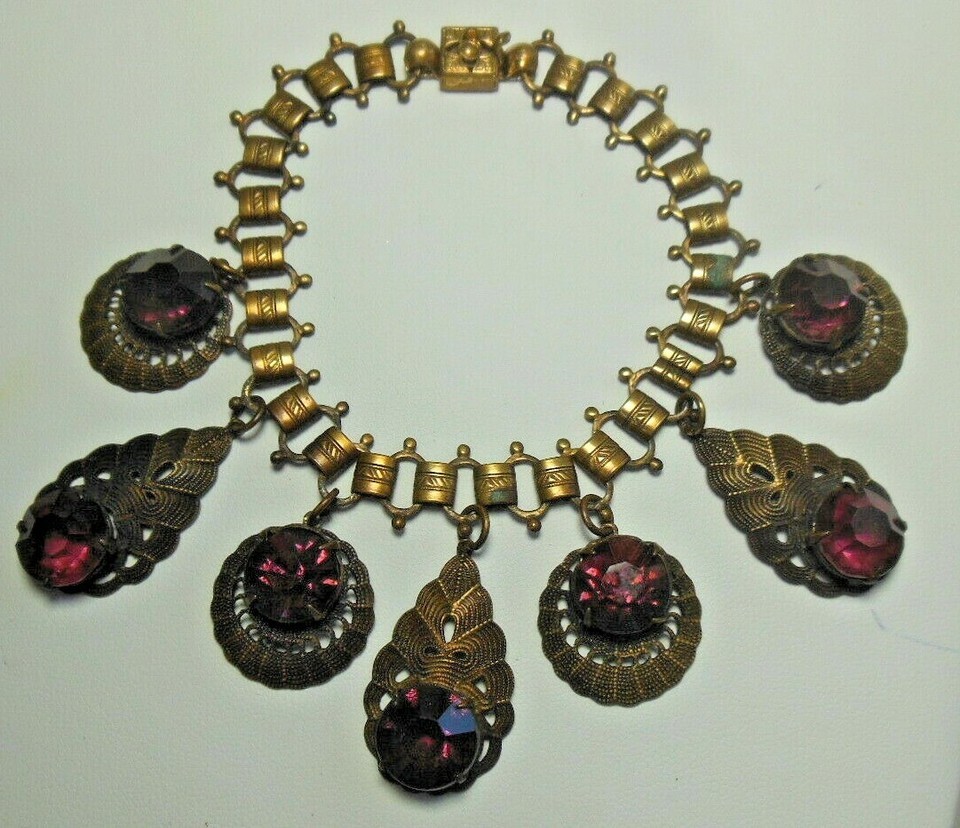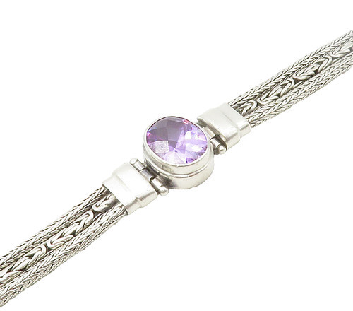 Vintage Purple Prong-set faceted Rhinestone Charm Link Bracelet