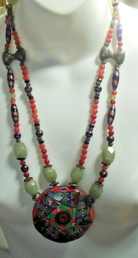Vintage Signed Maia Horvath Massive Gemstone Art Glass Pendant Necklace 24"