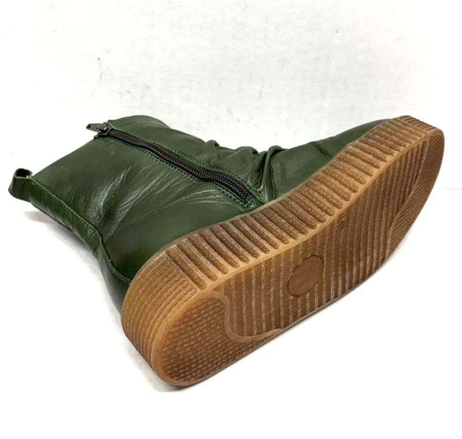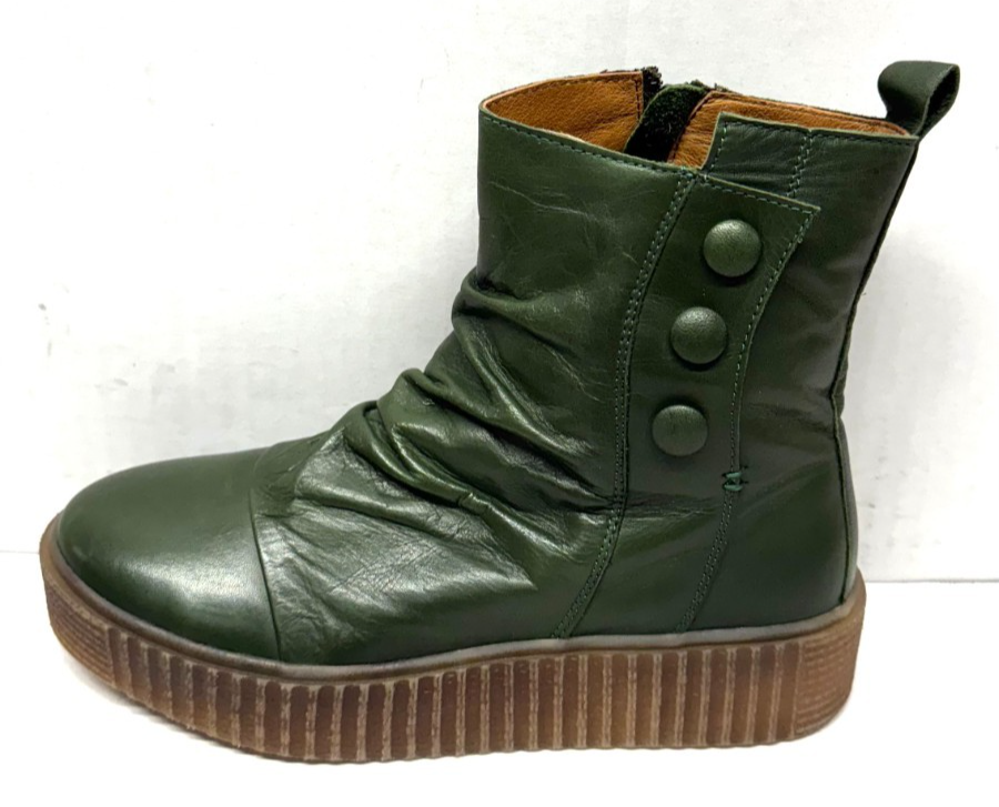 MIZ MOOZ LEATHER BOOTIE SIDE ZIPPER FOREST GREEN 37EU / 7US NEW # Z-199