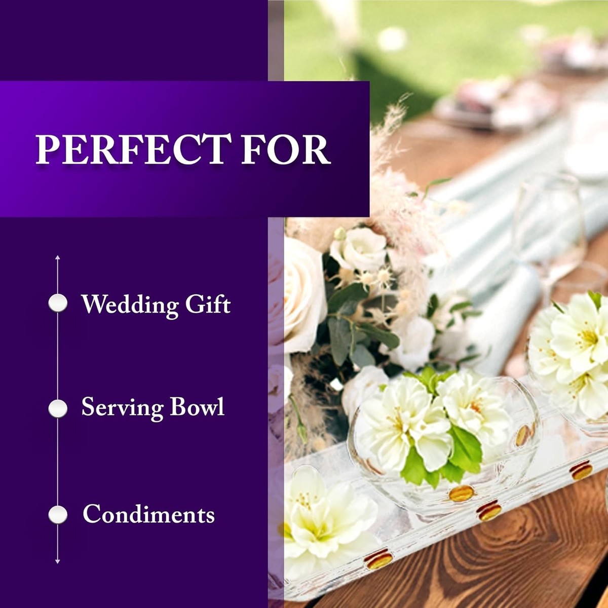 SUITABLE FOR OCCASIONS EVERYDAY MEALS: Whether you're hosting a party, gathering, or simply serving dinner at home, this multi-functional set is suitable for holding relish, sauces, chips and dips, candy, nuts, and other treats. The individual serving bowl pieces offer a variety of arrangement options, allowing you to organize your table with style and creativity.
