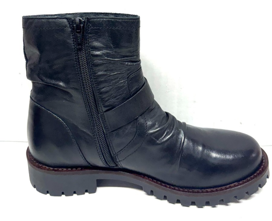 MIZ MOOZ RUCHED SOFT LEATHER BOOT SIDE BUCKLE/ ZIP 37EU / 7US BLACK Z-206