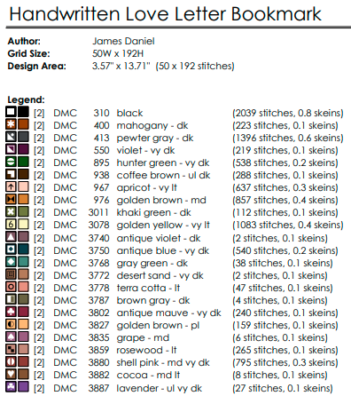 Handwritten Love Letter Bookmark | Cross Stitch Pattern (PDF)