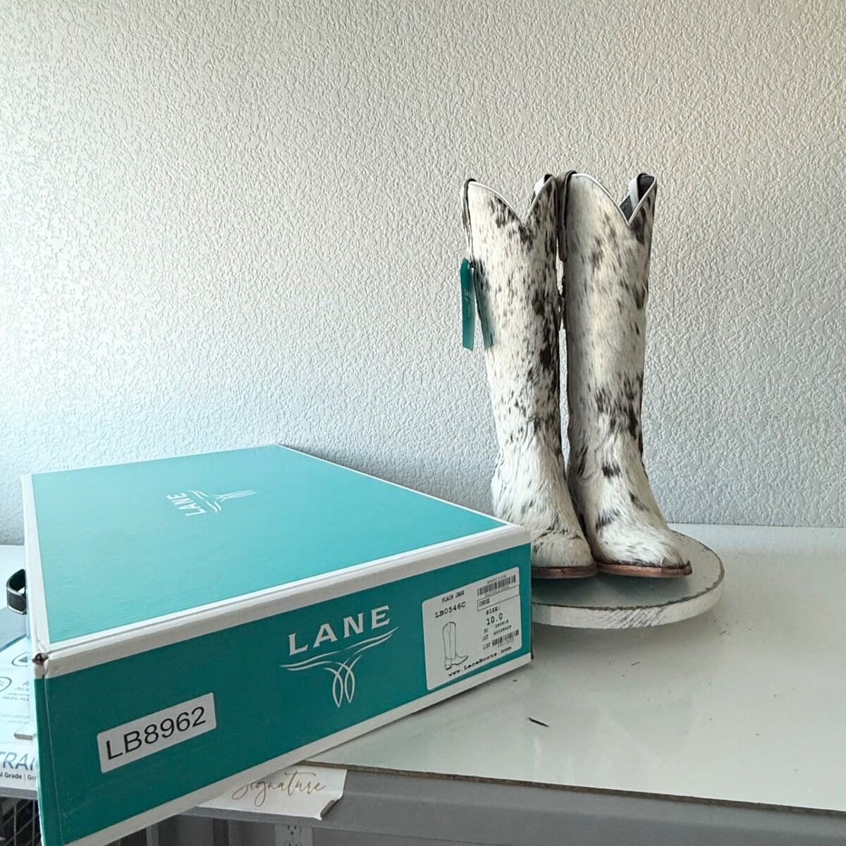 Lane Boots Womens Cowhide Cowboy Boots Tall Brown Western Cow Skin Size 10 NEW