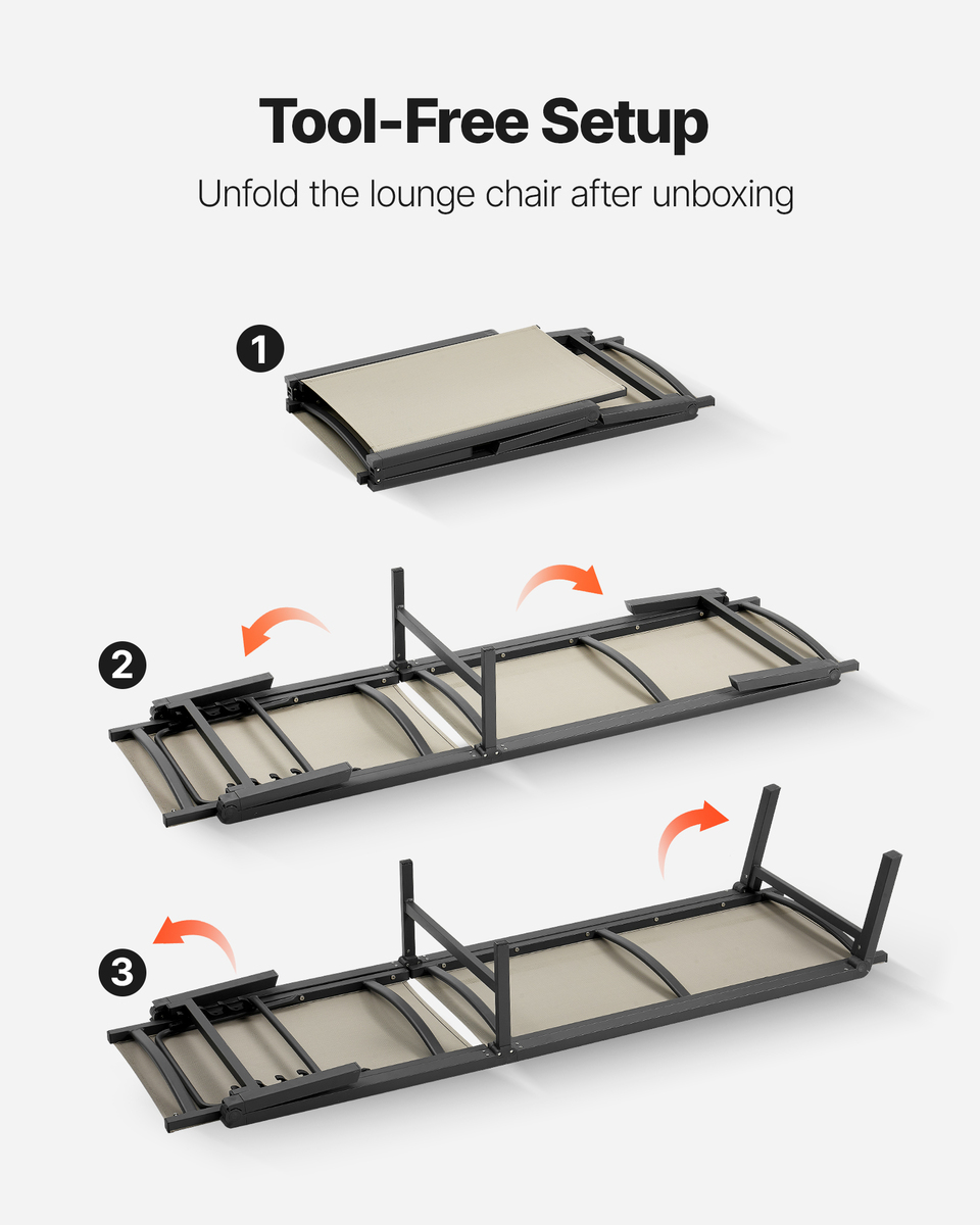 Effortless Assembly: No tools required! Set up this aluminum chaise lounge in just 3 easy steps and enjoy your new outdoor chair without any hassle. Quick, easy assembly means more time to relax.