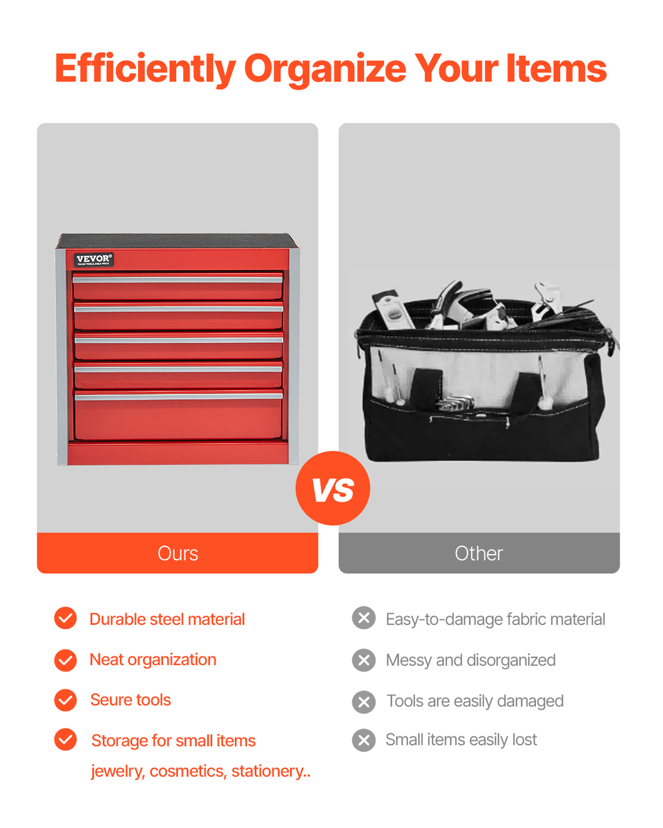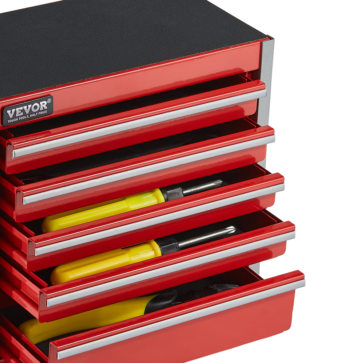 VEVOR 8.6" Metal Tool Box 5 Drawers EVA PP Feet Ball Bearing Lock Powder Red