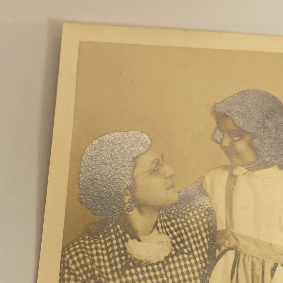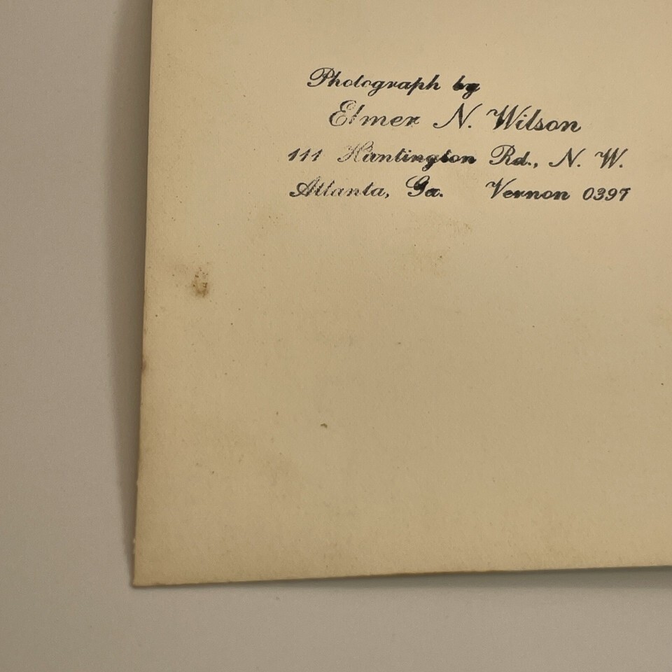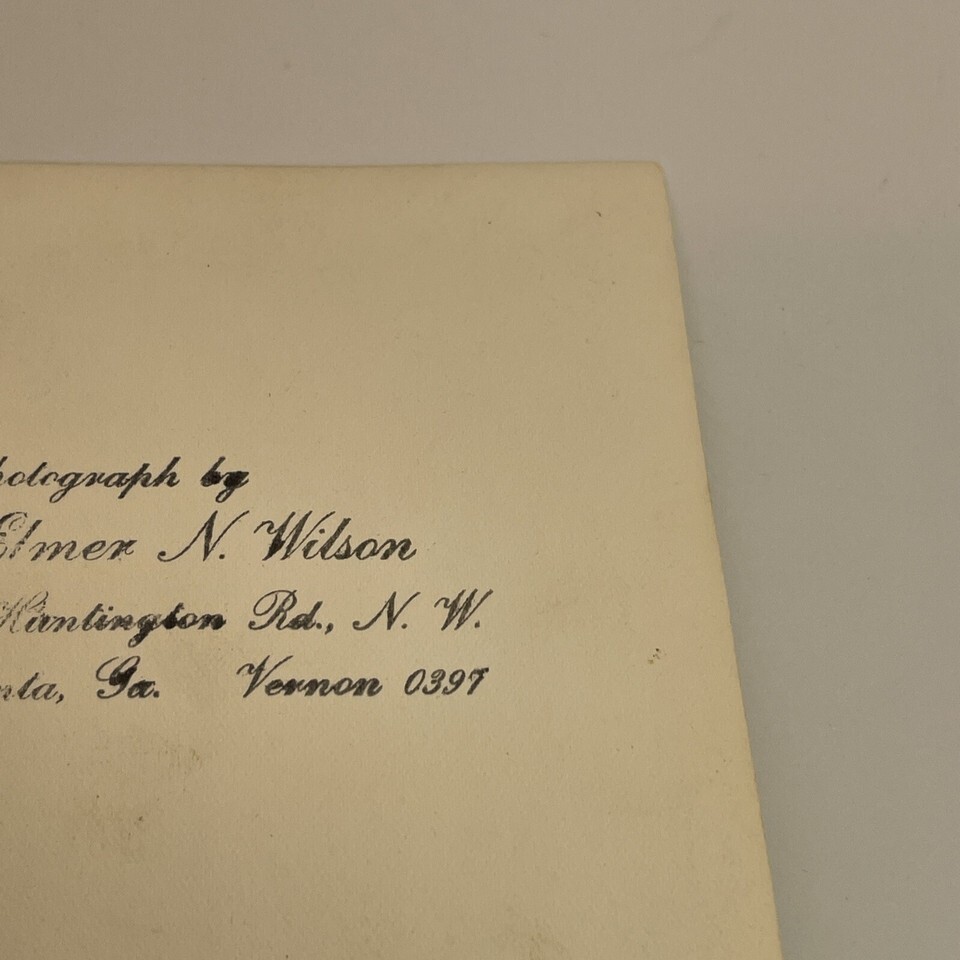 Good displayable condition. Paper is turning up due to age and storage. Paper is yellowing. Depicts a woman and little girl having their portrait taken by Atlanta photographer Elmer N Wilson. Please see pictures for condition details and measurements.