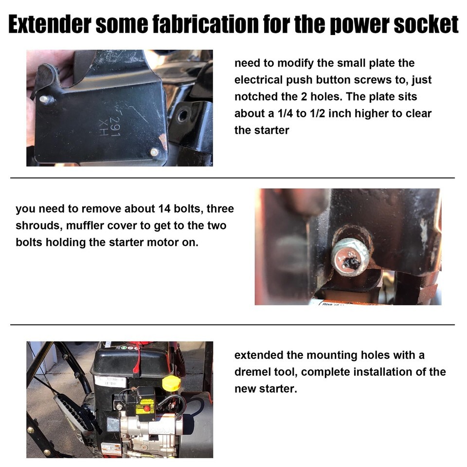 Upgrade Durability and Strength - This is JQ170-2 starter power more than original starter, we increase the winding size to make it stronger looks bigger.You need to modify the bracket to accept the starter button. Just need to extend the mountingto raise the mounting bolt hole 1/2 " higher, and drilled and tapped another hole 1/2" above the bottom hole.