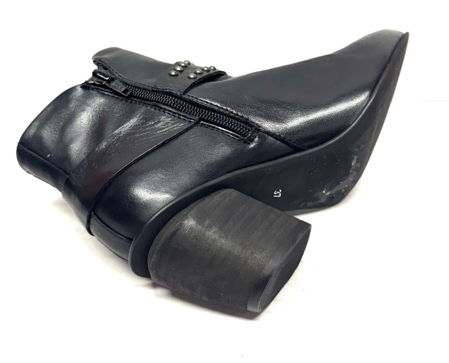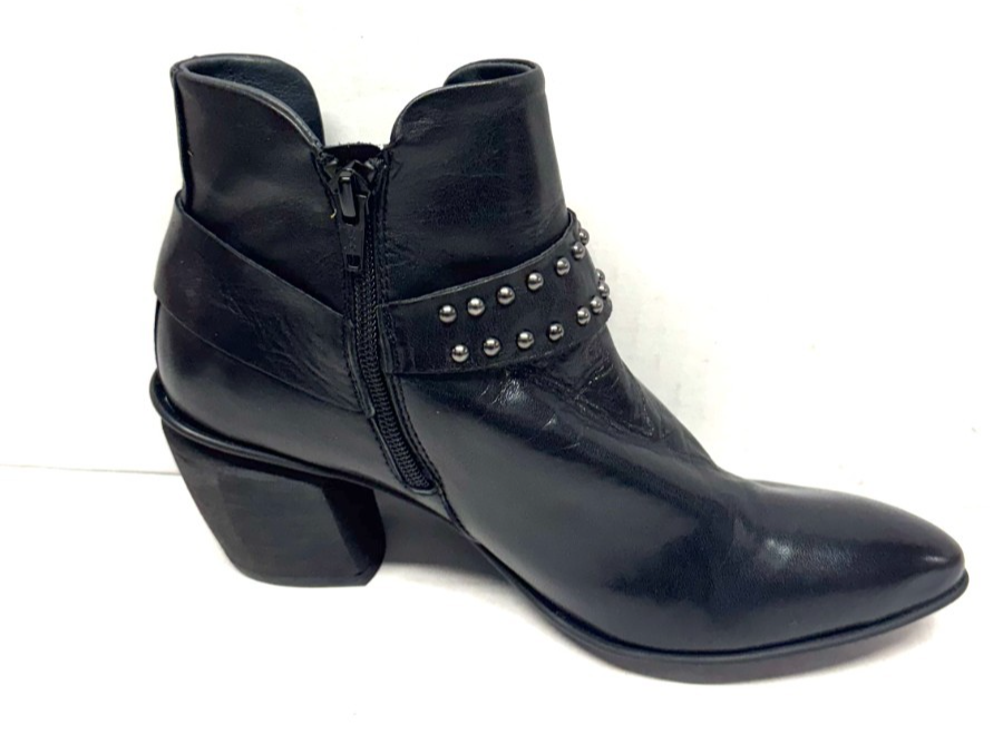 MIZ MOOZ LEATHER BOOTIE SIDE ZIP BUCKLE / STUDS BLACK 37EU / 7US NEW # Z-209