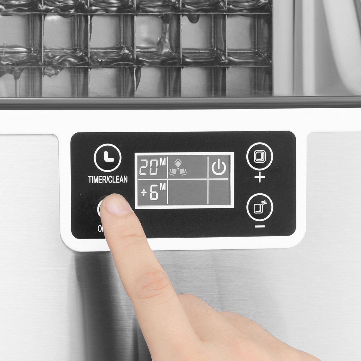 Easy to Control Self-Cleaning: The control panel is very easy to operate. Simply fill the tabletop ice maker with water, and press the ice-making button to start operating. The indicator light will turn on when the water level is low or the ice basket is full. Just press and hold the power button for 5 seconds to activate the 30-minute self-cleaning mode.