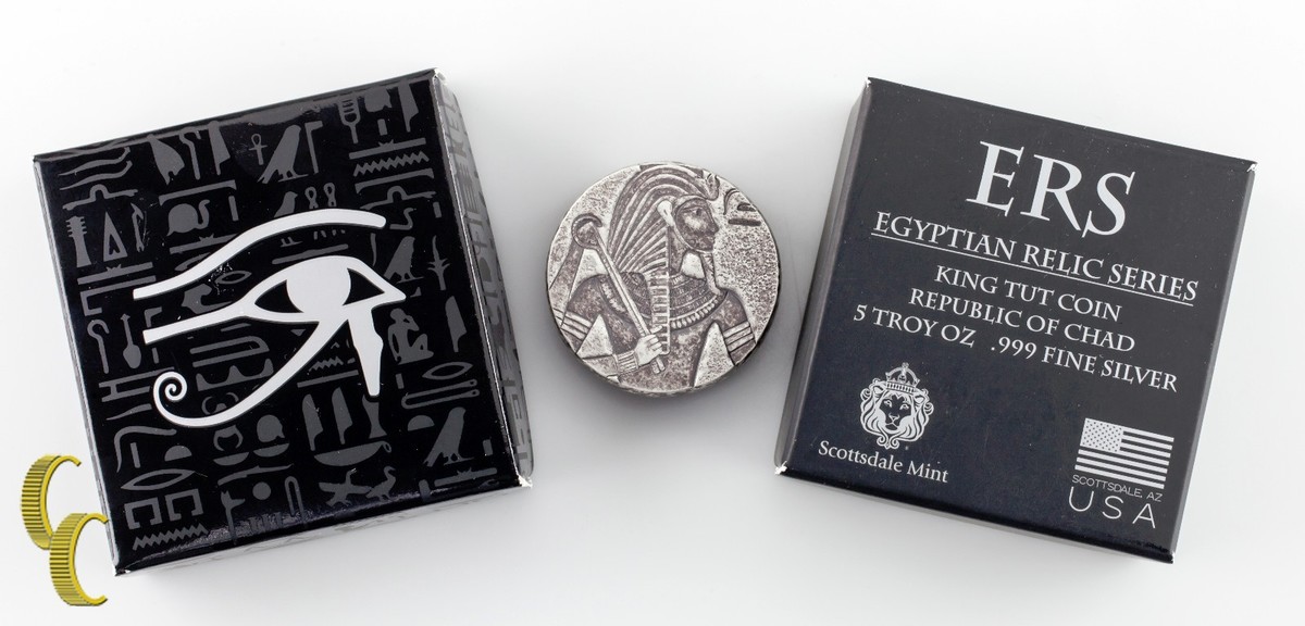 2016 5oz Silver Republic of Chad Egyptian Relic Series King Tut Coin 3000 Francs