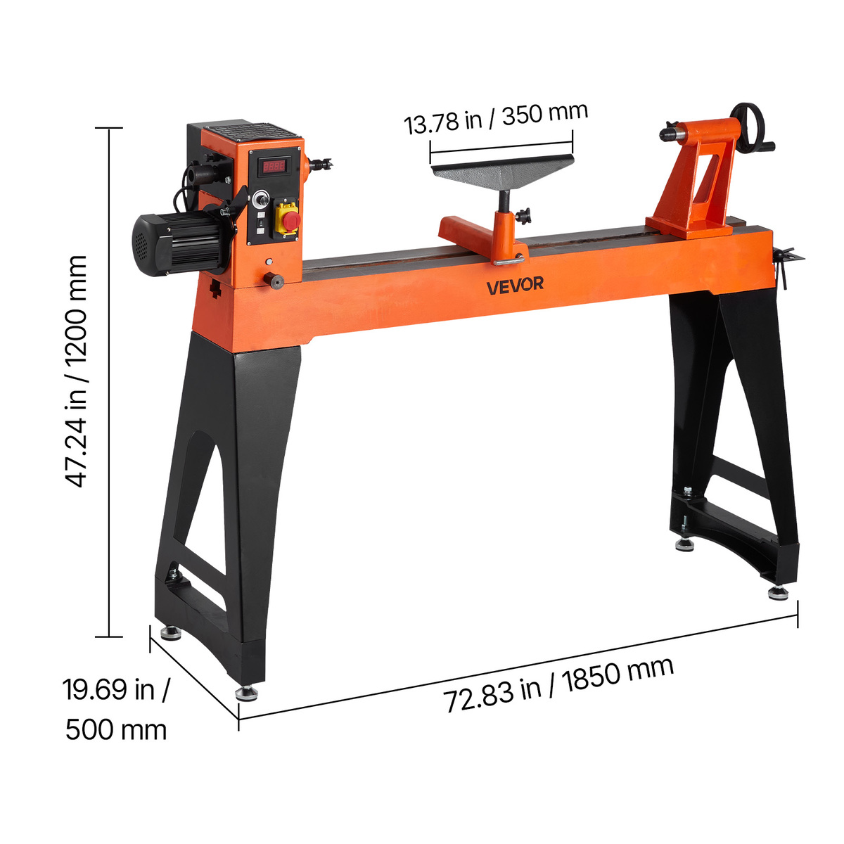 18 x 40 in Workbench: With an 18 x 40 in (457 x 1020 mm) work area, this wood lathe machine is suitable for handling medium to large projects such as table legs, canes, tall vases, and furniture components