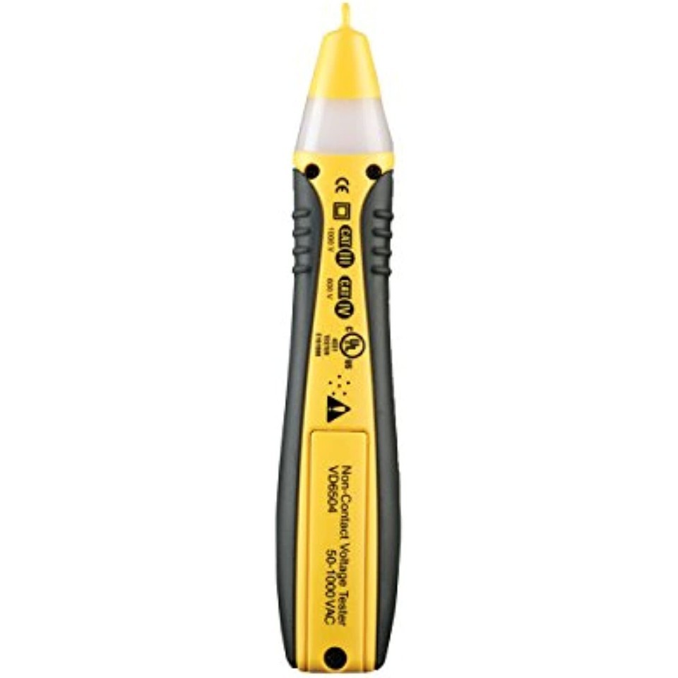 Product Description A non-contact voltage tester serves as a key component in any electrical toolkit, allowing the user to verify the presence of AC voltage prior to working on an electrical installation or during troubleshooting without requiring physical contact with live electrical conductors. Engineered to specifications required by professional electricians the Sperry Instruments VD6504 Non-Contact Voltage Detector features both audible (beeping) and visual (360 degree flashing red light) indicators to alert the user of the presence of AC voltage from 50V to 1000V. The fully insulated probe tip eliminates the risk of contacting live electrical wires while the patented battery check feature designed into the unit ensures tester and batteries are operating properly, virtually eliminating false negative readings. This unit features 250lb crush-rated impact resistant ABS housing with a protective rubber overmold to withstand tough applications while the soft-grip contoured design ensures a positive user experience over long hours of repeated use. Applications include quickly locating hot terminals in receptacles, pinpointing breaks in wires and detecting the absence/presence of voltage at outlets, circuit breaker panels, light fixtures, switches, and motors. The unit includes a pocket-clip for secure portability. Tester is C/ETL/UL Listed, CE Certified, CAT III 1000V/IV 600V rated, and includes a Limited Lifetime Warranty. Operates from a single AAA battery (included). Frequency: 50?60Hz From the Manufacturer A non-contact voltage tester serves as a key component in any electrical toolkit, allowing the user to verify the presence of AC voltage prior to working on an electrical installation or during troubleshooting without requiring physical contact with live electrical conductors. Engineered to specifications required by professional electricians the Sperry Instruments VD3504 Non-Contact Voltage Detector features both audible (beeping) and visual (360 degree flashing red light) indicators to alert the user of the presence of AC voltage from 50V to 1000V. The fully insulated probe tip eliminates the risk of contacting live electrical wires while the patented battery check feature designed into the unit ensures tester and batteries are operating properly, virtually eliminating false negative readings. This unit features 250lb crush-rated impact resistant ABS housing with a protective rubber overmold to withstand tough applications while the soft-grip contoured design ensures a positive user experience over long hours of repeated use. Applications include quickly locating hot terminals in receptacles, pinpointing breaks in wires and detecting the absence/presence of voltage at outlets, circuit breaker panels, light fixtures, switches, and motors. The unit includes a pocket-clip for secure portability. Tester is C/ETL/UL Listed, CE Certified, CAT III 1000V/IV 600V rated, and includes a Limited Lifetime Warranty. Operates from a single AAA battery (included). Frequency: 50?60Hz