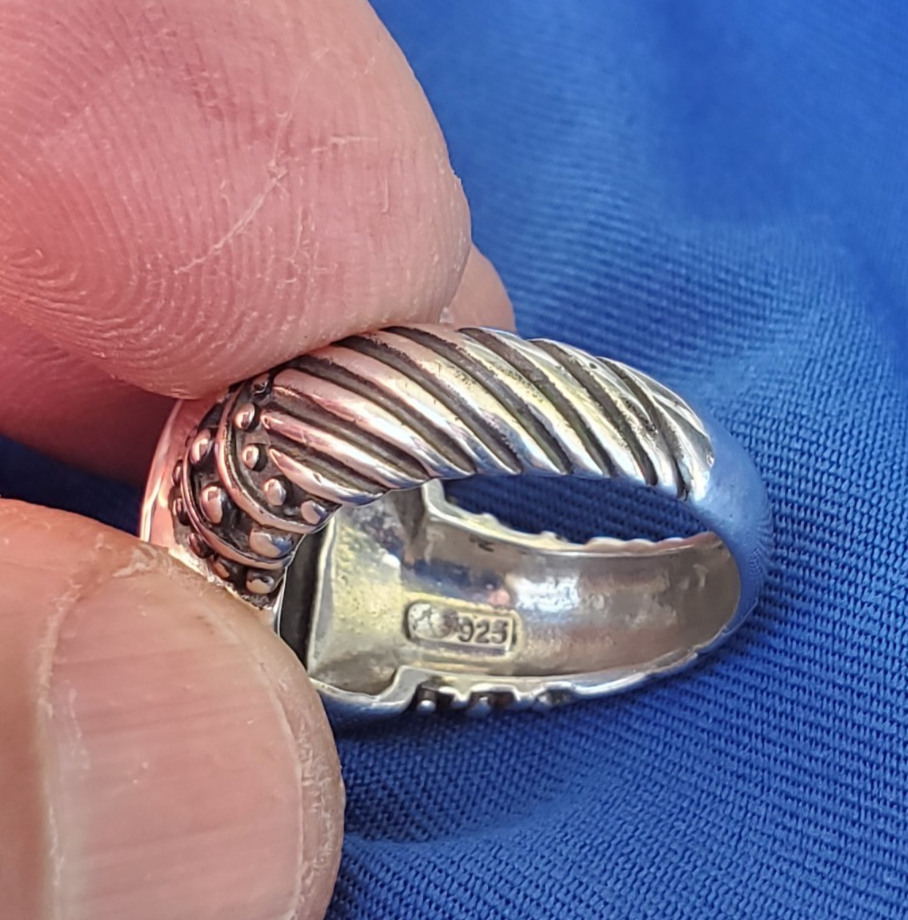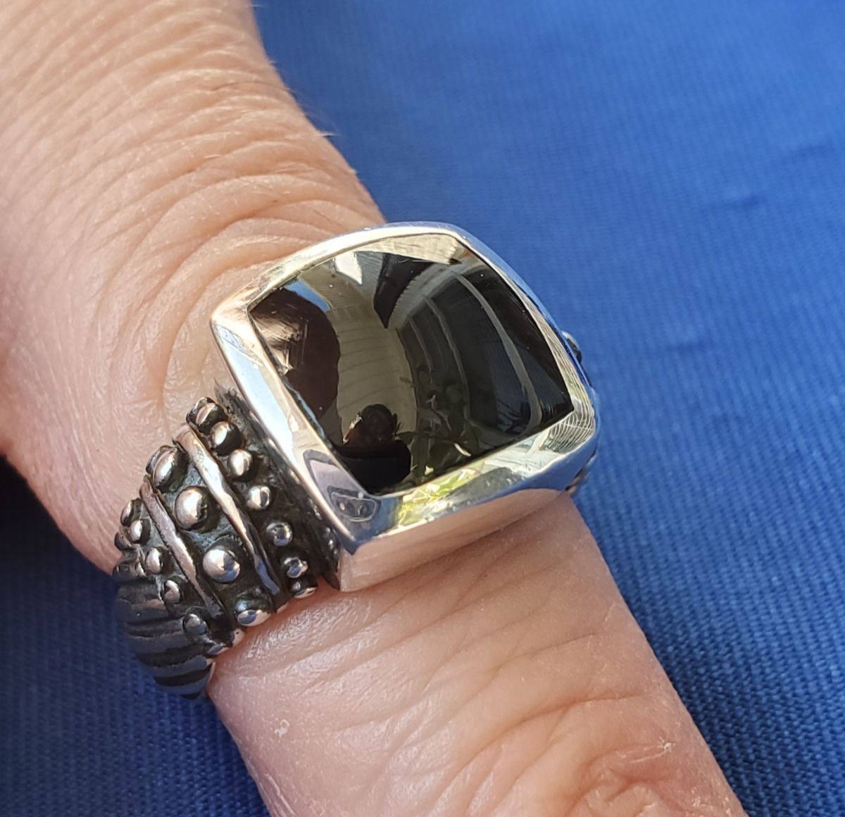 Vintage Designer Signed Onyx Sterling Silver 925 RING Hand Made Size 7 Patina