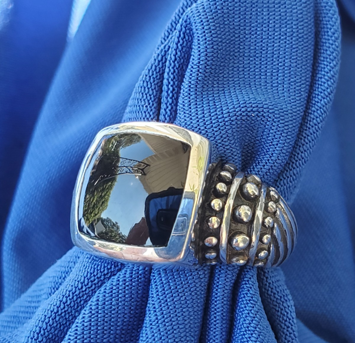 Vintage Black Onyx Gemstone Sterling Silver 925 Ring Size 7.
