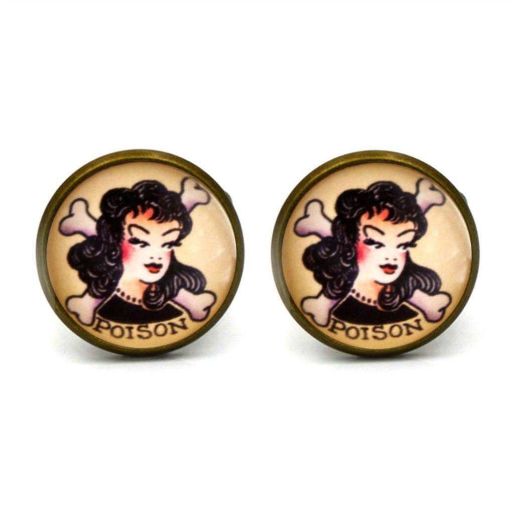 TATTOO ART CUFFLINKS Sailor Jerry Inspired Retro Navy Rockabilly Nautical Pinup
