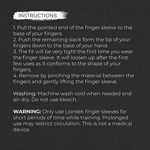 Only use Liontek finger sleeves for short periods of time while training. Prolonged use may restrict circulation. This is not a medical device.