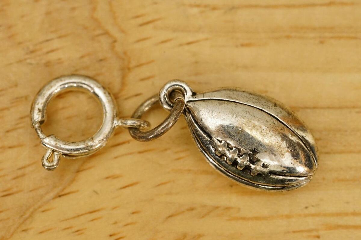 Vintage Costume Jewelry Carlyle Silver Tone Metal Football Clip On Pendant Charm