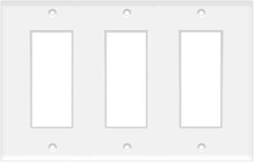3-Gang Decorative Wall Plate Cover, Unbreakable Flexible Plastic, Size W=6-3/8" x H=4-1/2" White, UL Listed.
