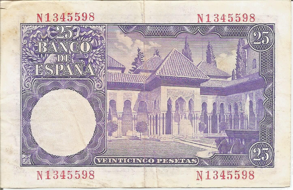 Spain 25 Pesetas Banknote 1954 Cir. # 23A