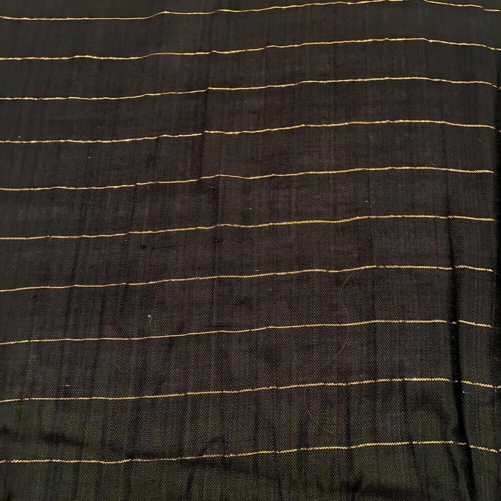 Handmade black and gold scarf with black fringe. No stains or tears. Elegant look and can be worn as an over shoulder wrap, hair/head accessory, around neck. Very versatile. 55" long x 21" wide.