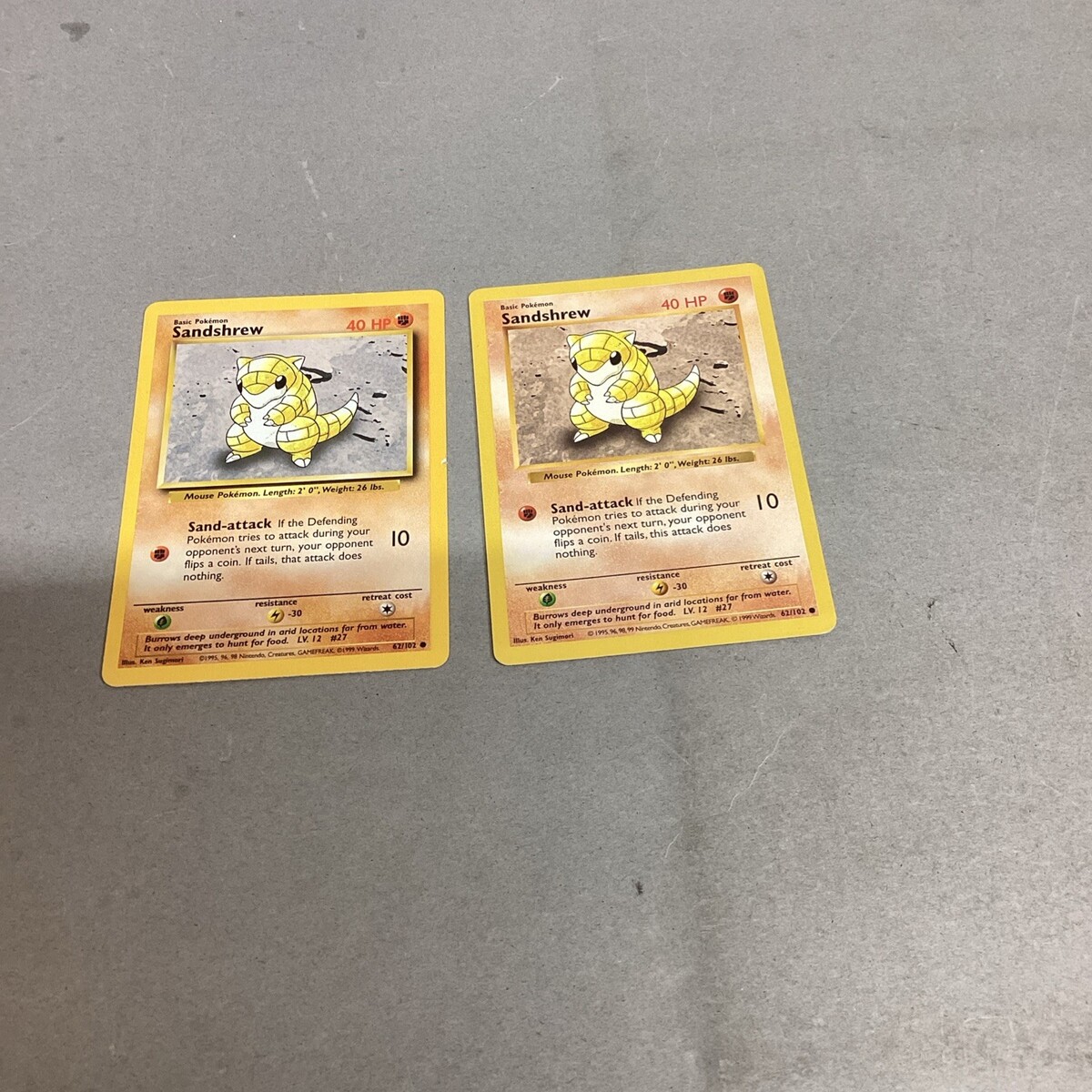 Pokemon Sandshrew 1st Edition 62/102 Base Set Trading Cards. Set of 2.