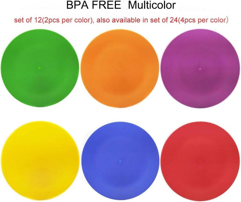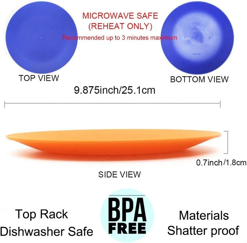 Everyday Plates Best Value: Set of 12(red/orange/yellow/purple/green/blue),Diameter: 9.875? (25.1cm), Height: 0.75? (1.9cm),Large enough for dinner salad use, are the perfect plates size for your hands.