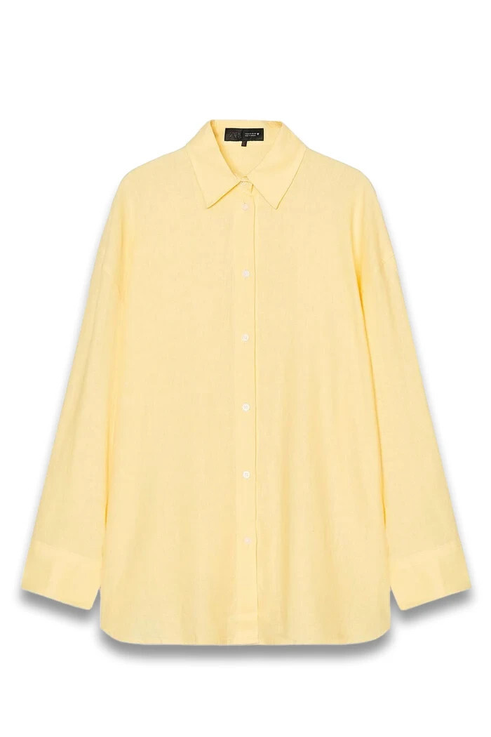 NWT ZARA COLLECTION OVERSIZED PASTEL YELLOW 100% LINEN SHIRT L