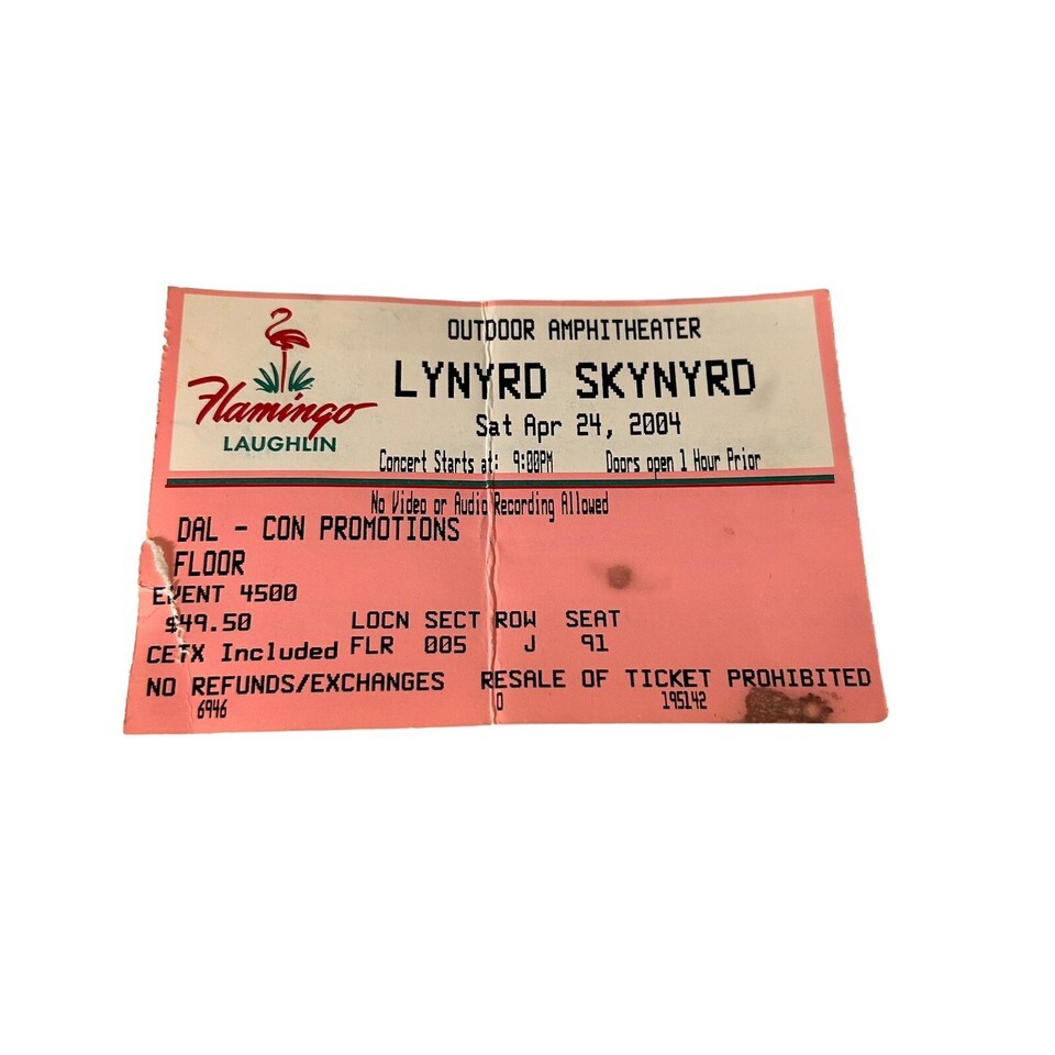 Lynyrd Skynyrd Concert Ticket 04/24/04 Flamingo Laughlin Nevada Amphitheater