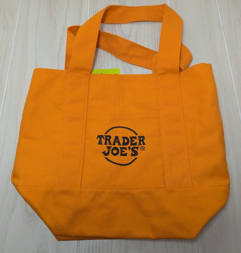 TRADER JOES Mini Canvas Tote Bag orange black embroidery NWT