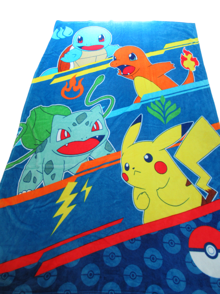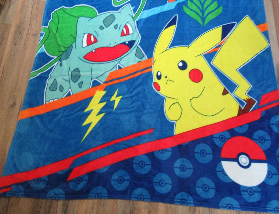 Pokémon child throw blanket Twin Blue Pikachu Bulbasaur Squirtle Charmander