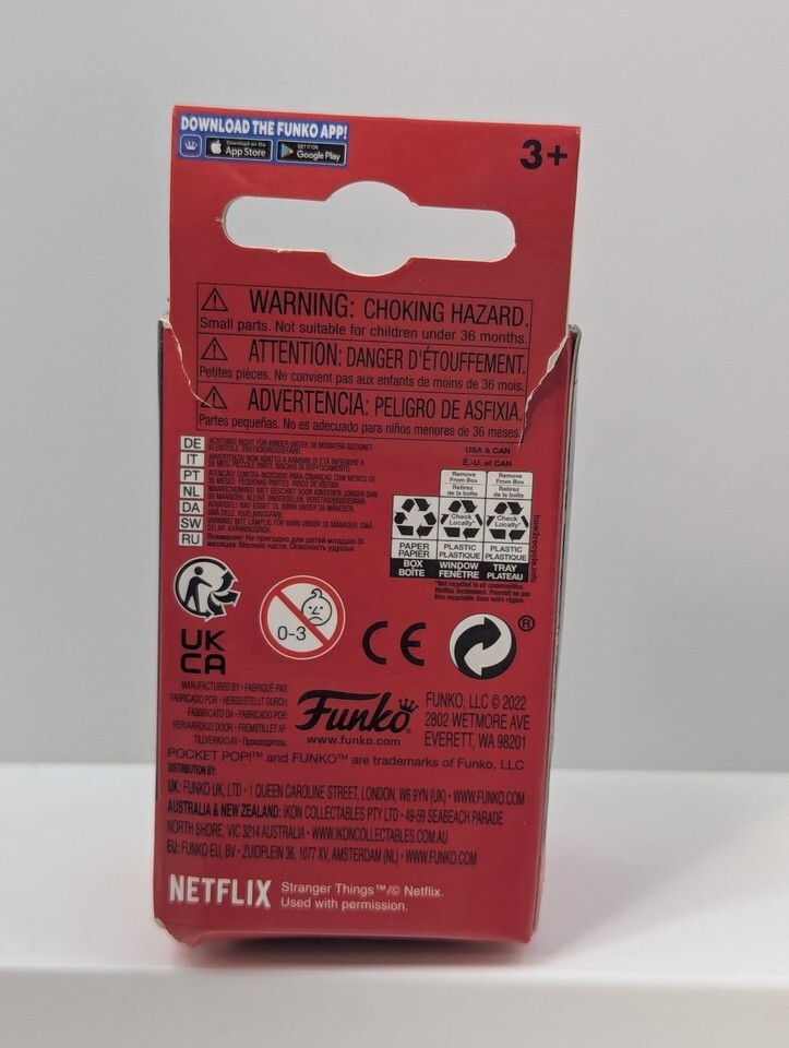 Measuring approximately 1.5 inches tall, this collectible is part of Funko's popular Pocket Pop! series, designed for portability and fandom display. The figure is housed in its original retail packaging, highlighting the Stranger Things branding and Funko's logo with a clear window for easy viewing. Produced in 2022, this figure is an excellent addition for collectors and fans of the series, combining unique design, quality materials, and official licensing.