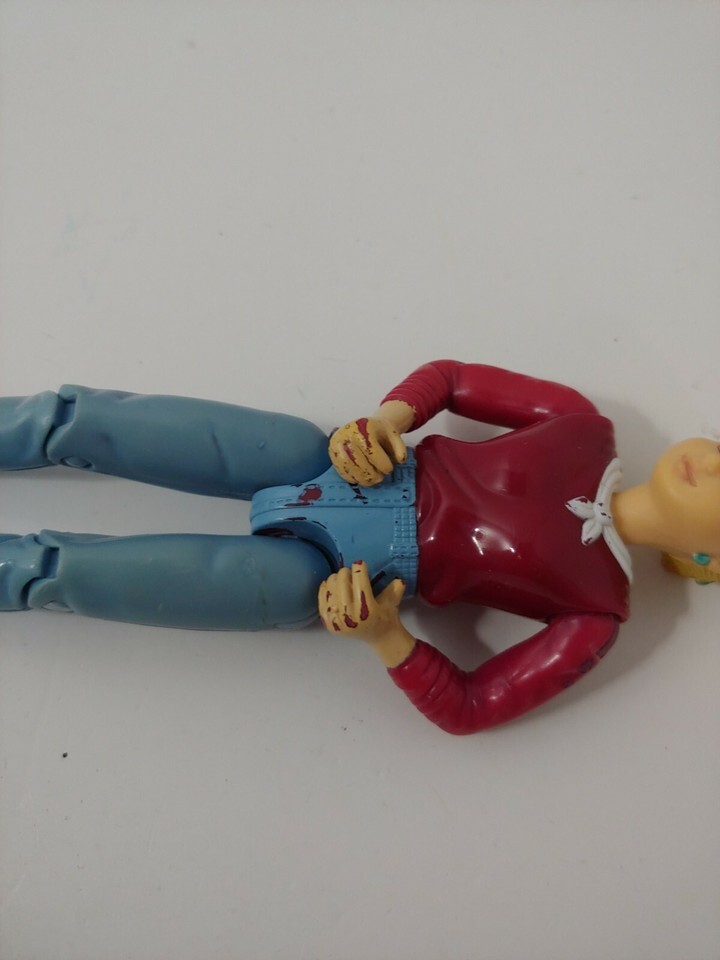 Doll is well used: paint scuffs and paint loss from play, limbs are a bit loose, although I think her legs were always loose like the other stable figures, and it looks like nail polish dots on one arm in addition to the arms' paint being dull
