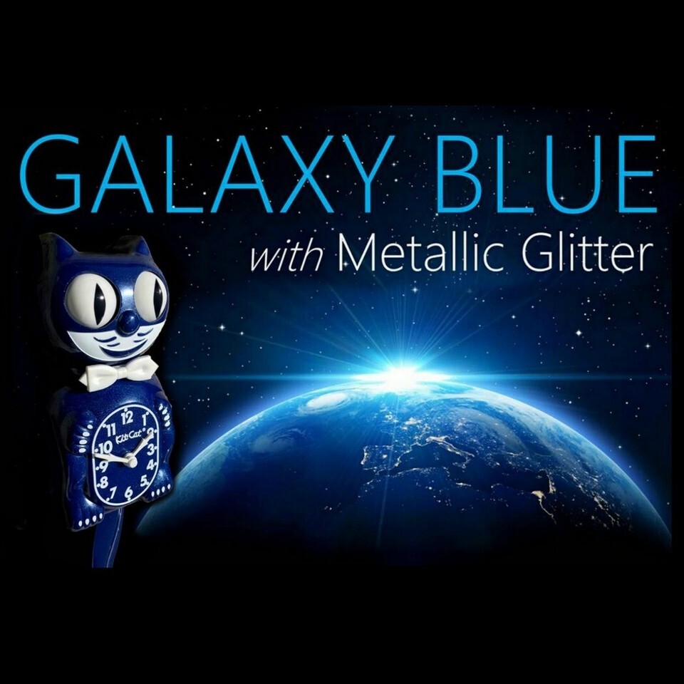 GALAXY BLUE KIT CAT CLOCK 15.5" Glitter MADE IN USA Free Battery Kit-Cat Klock