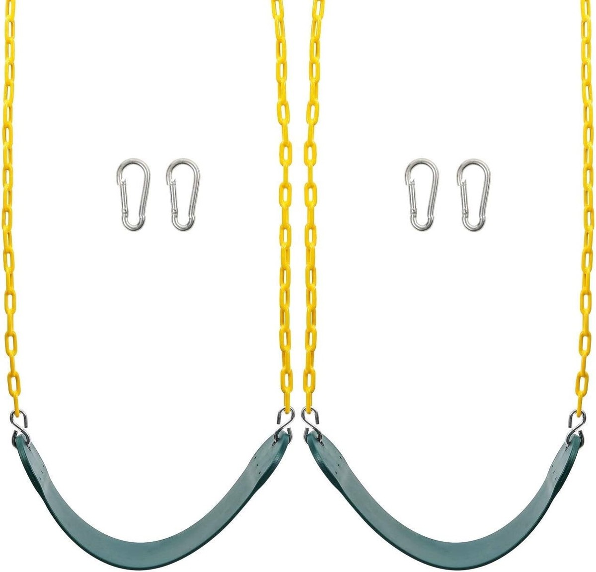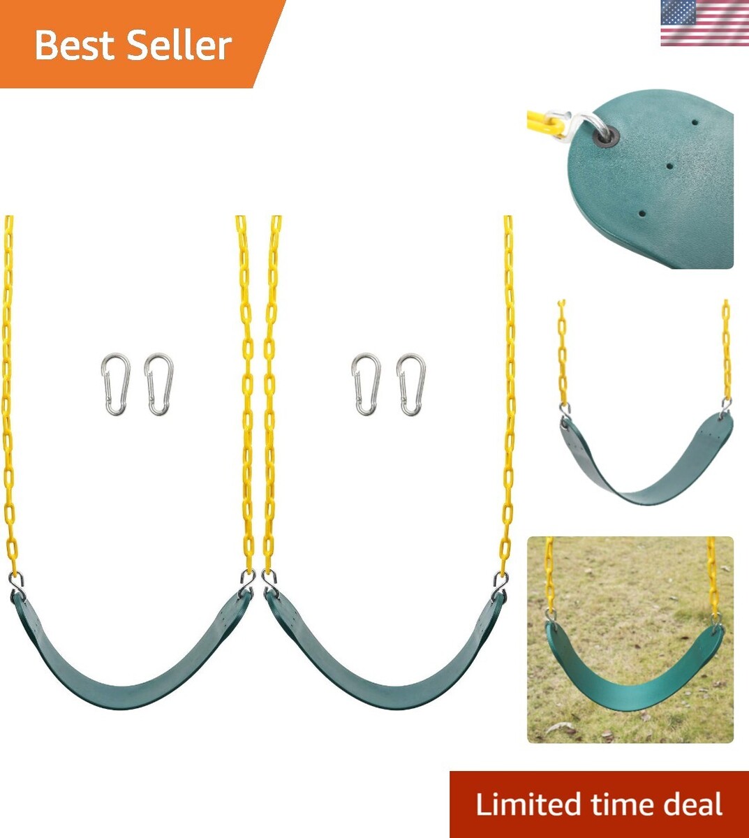2PCS Swings Seats Heavy Duty with 66" Chain, Playground Swing Set Accessories with Snap Hooks, Support 250lb Green