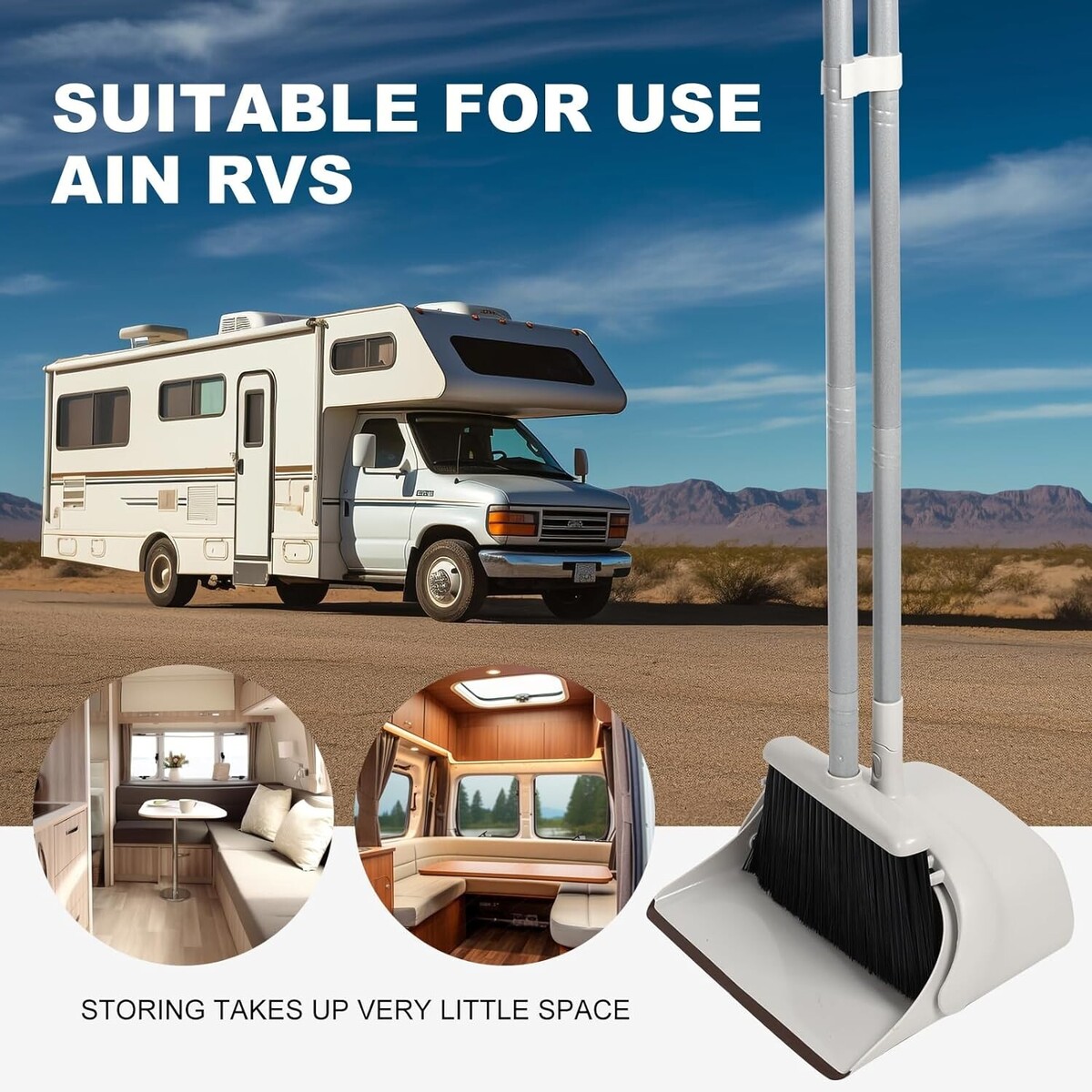 Adjustable broom handle and foldable dustpan for easy storage