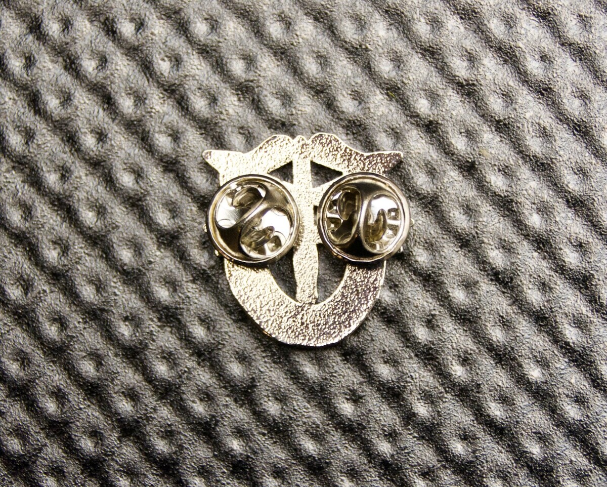 De Oppresso Liber Lapel Pin. Measures approximately 1? x 1? with double butterfly clasp.