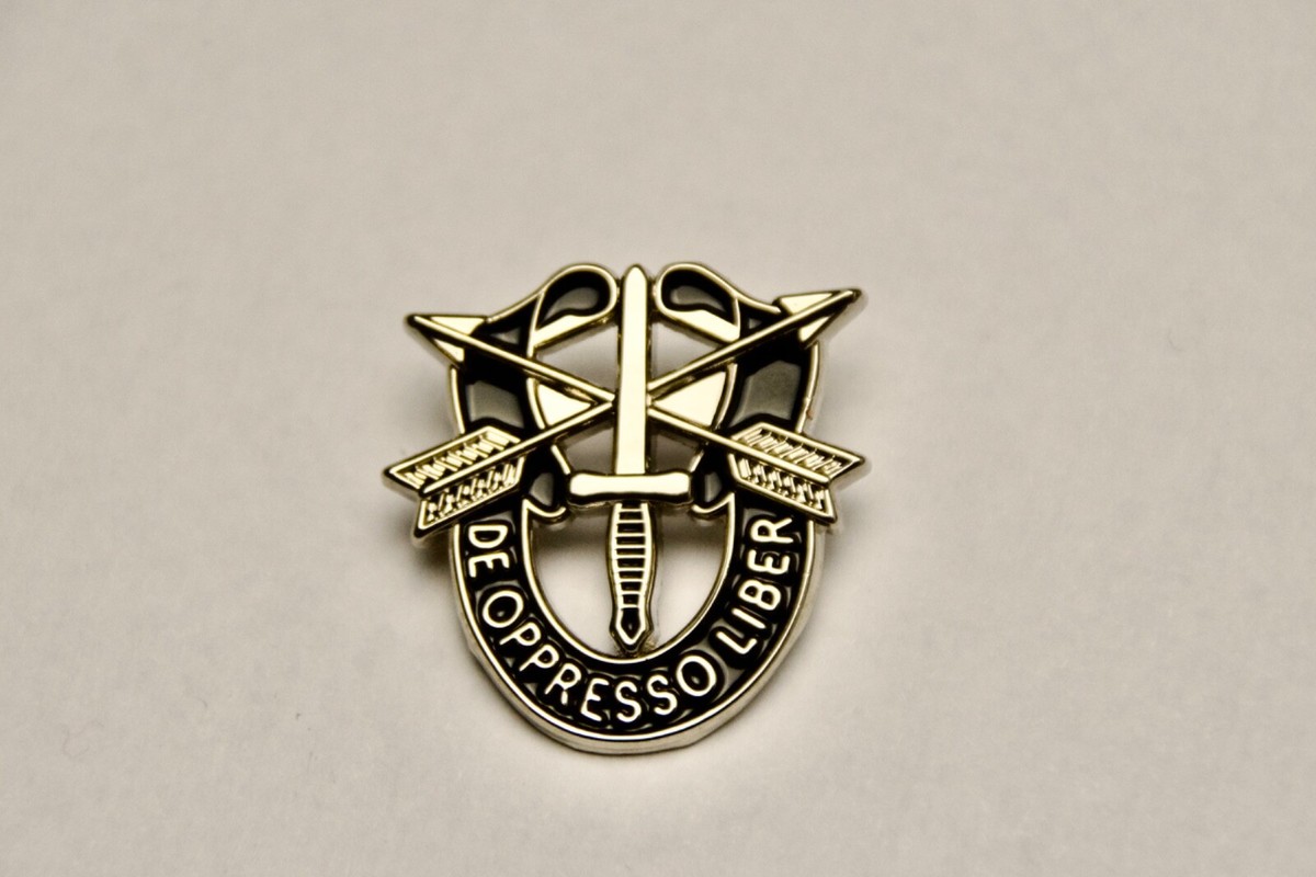 De Oppresso Liber Lapel Pin US Army Special Forces Group SFG Green Beret SF