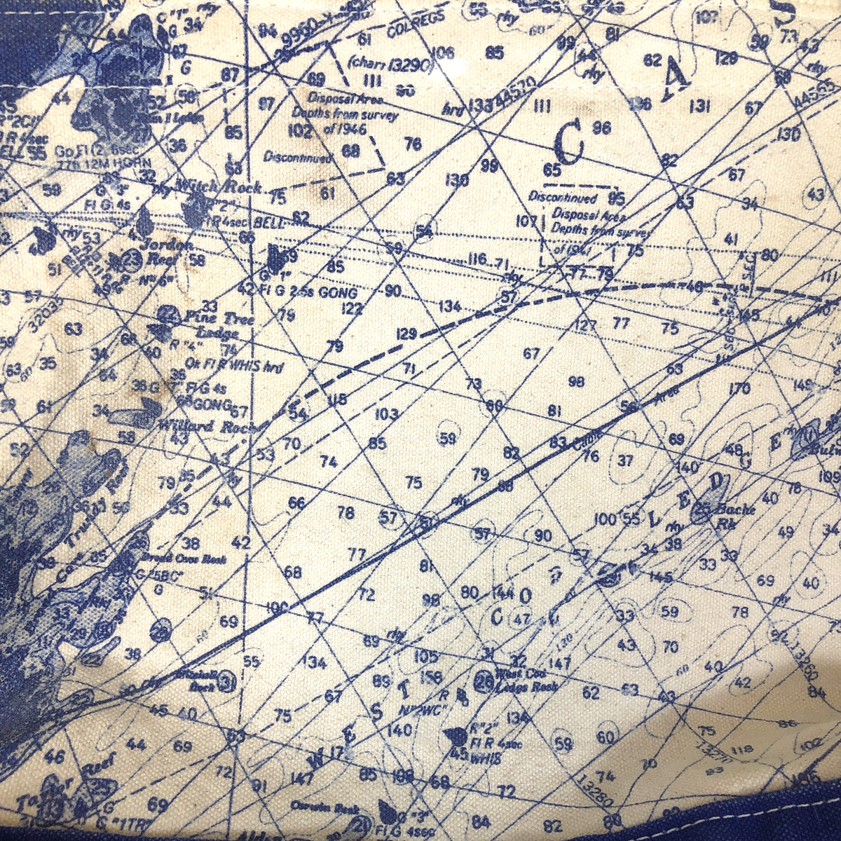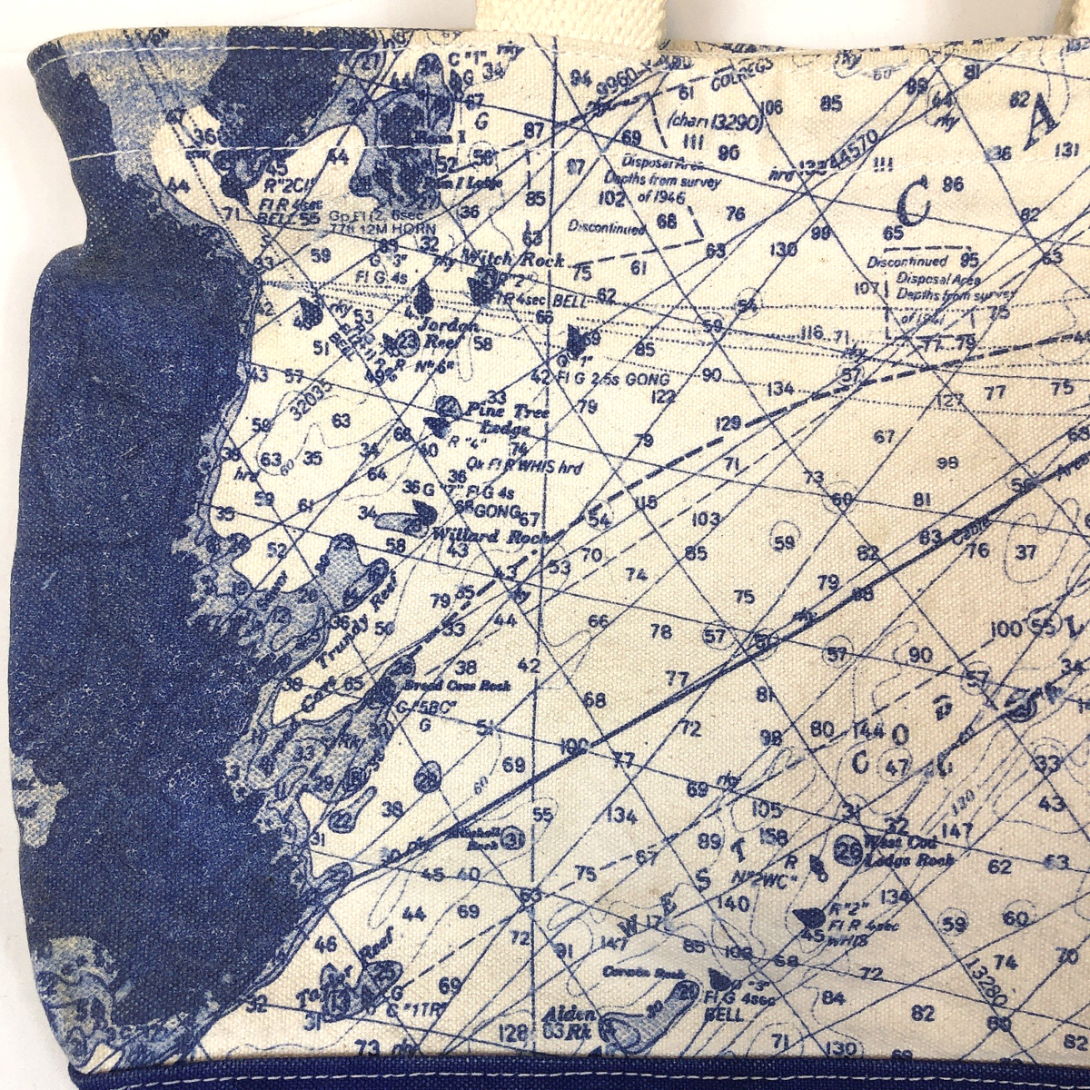 Vintage Accessoires Unlimited Casco Bay Maine Nautical Chart Canvas Zip Tote