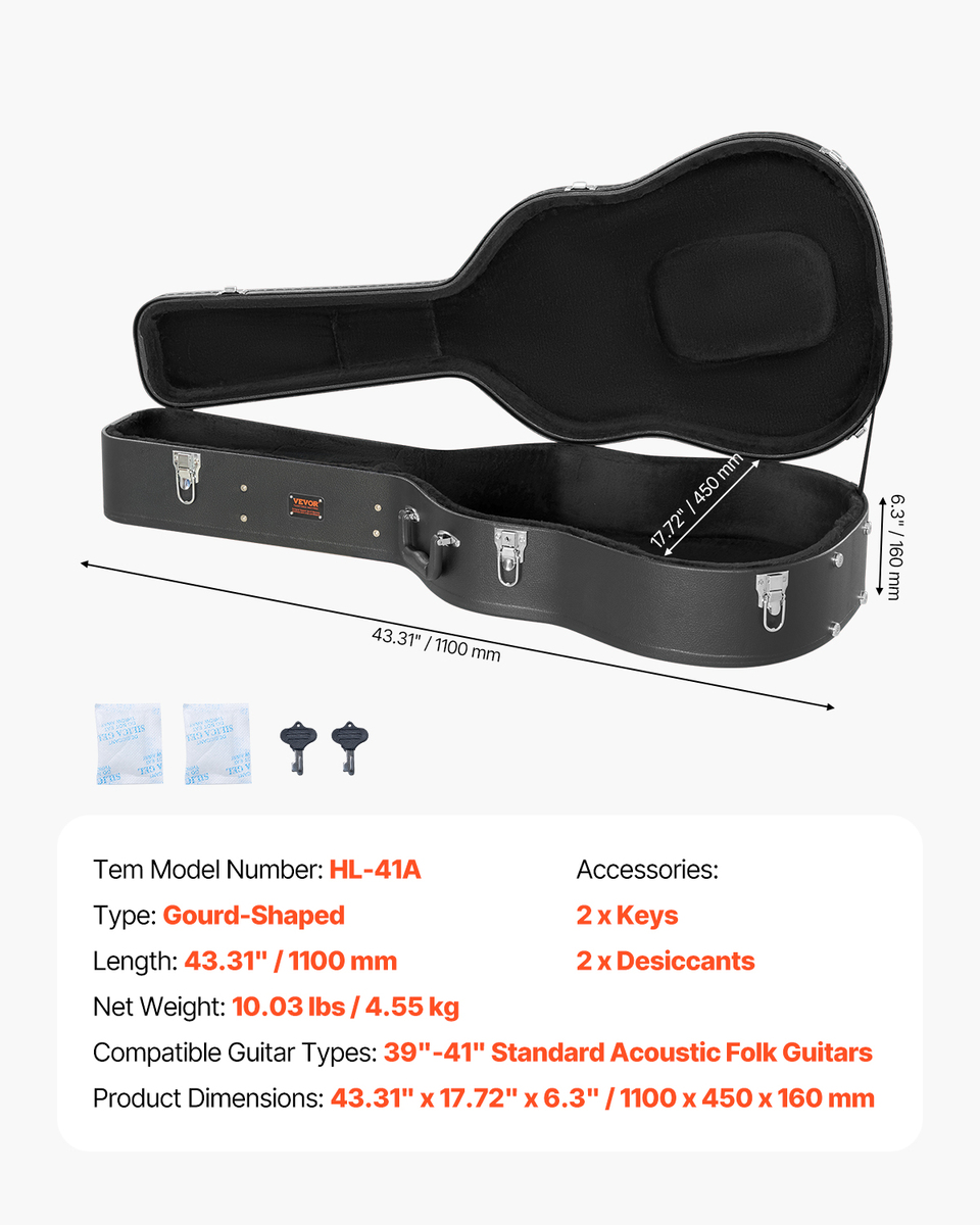 Suitable for Acoustic Guitars: This gourd-shaped guitar hard case, with a total length of 43.31", is greatly suitable for 39"-41" acoustic guitars! Please check the size to see if it is suitable for your guitar when purchasing.