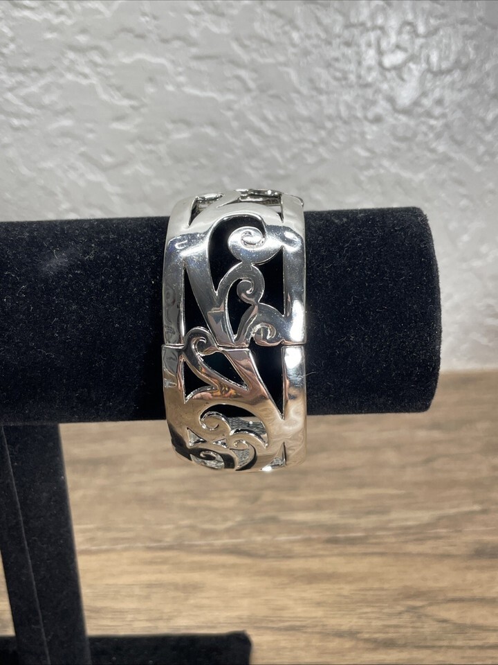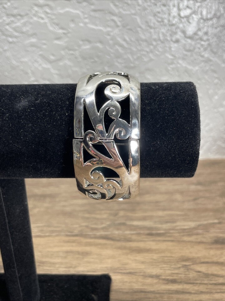 Vintage Silver Tone Ornate Cuff Bracelet Estate Jewelry Find Damask KG JD