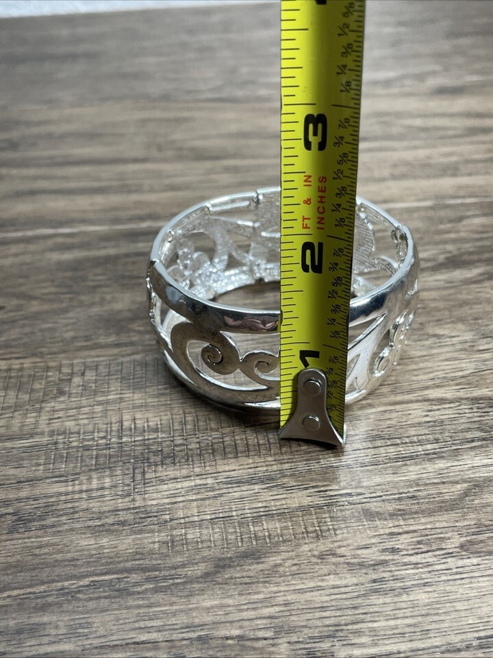 Vintage Silver Tone Ornate Cuff Bracelet and similar items