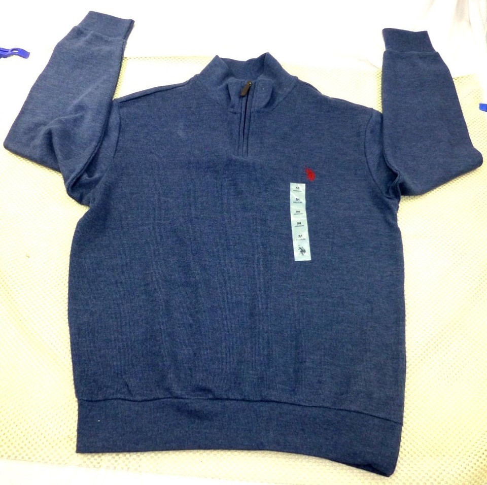 U.S. Polo Assn. Red Pony Logo Mens Blue 1/4 Zip Pullover Sweater Med NWT