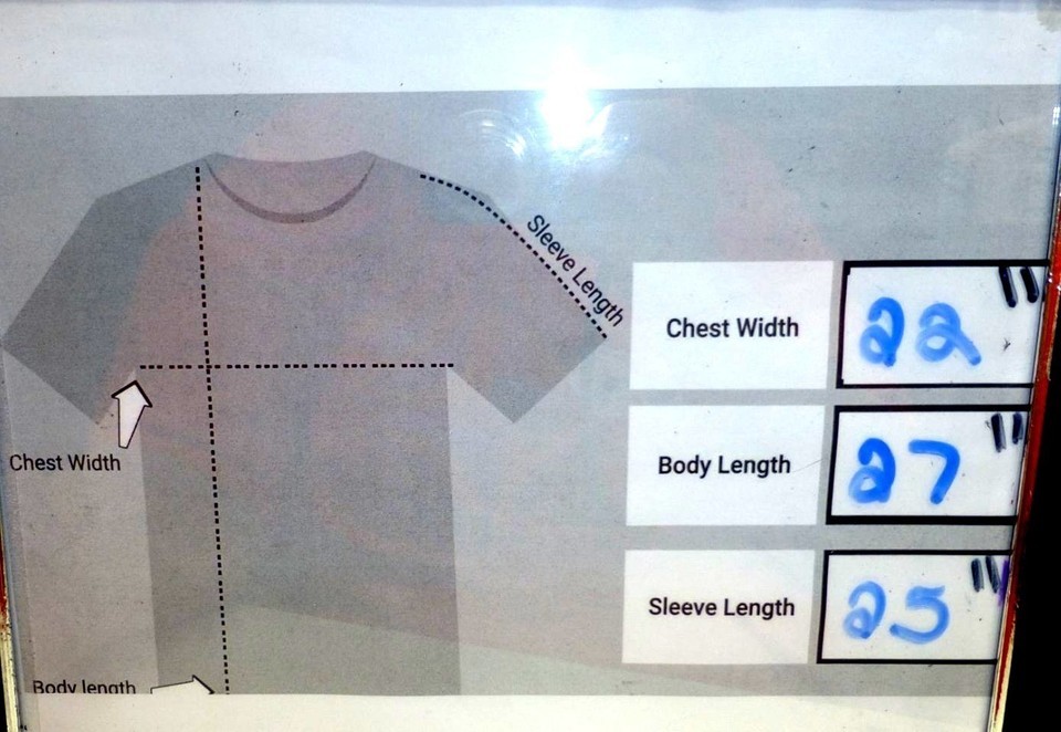 Chest Width = 22 Inches, Body Length = 27 Inches, Sleeve Length = 25 Inches