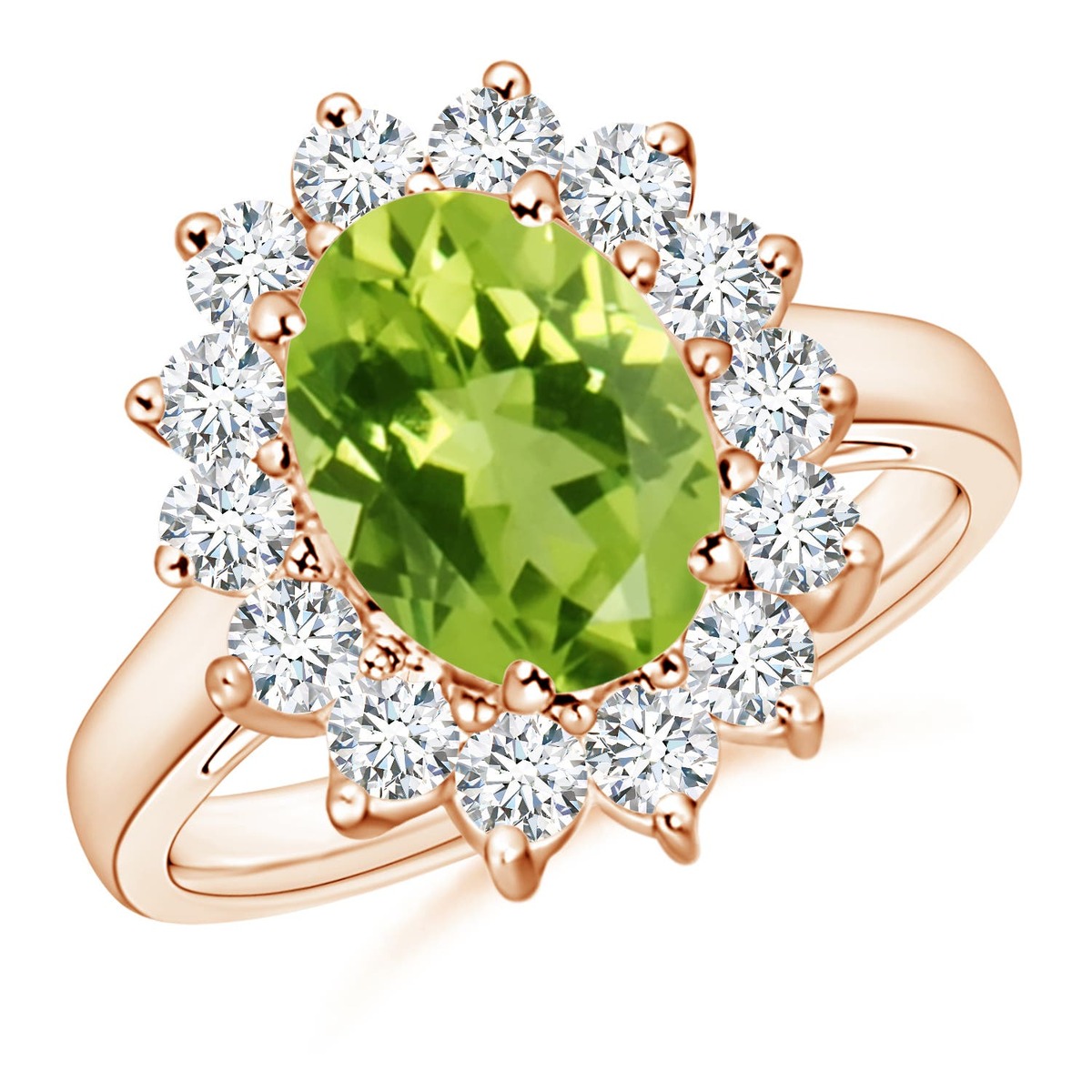 ANGARA 3.33Ct Princess Diana Inspired Peridot Ring with Diamond Halo in 14K Gold