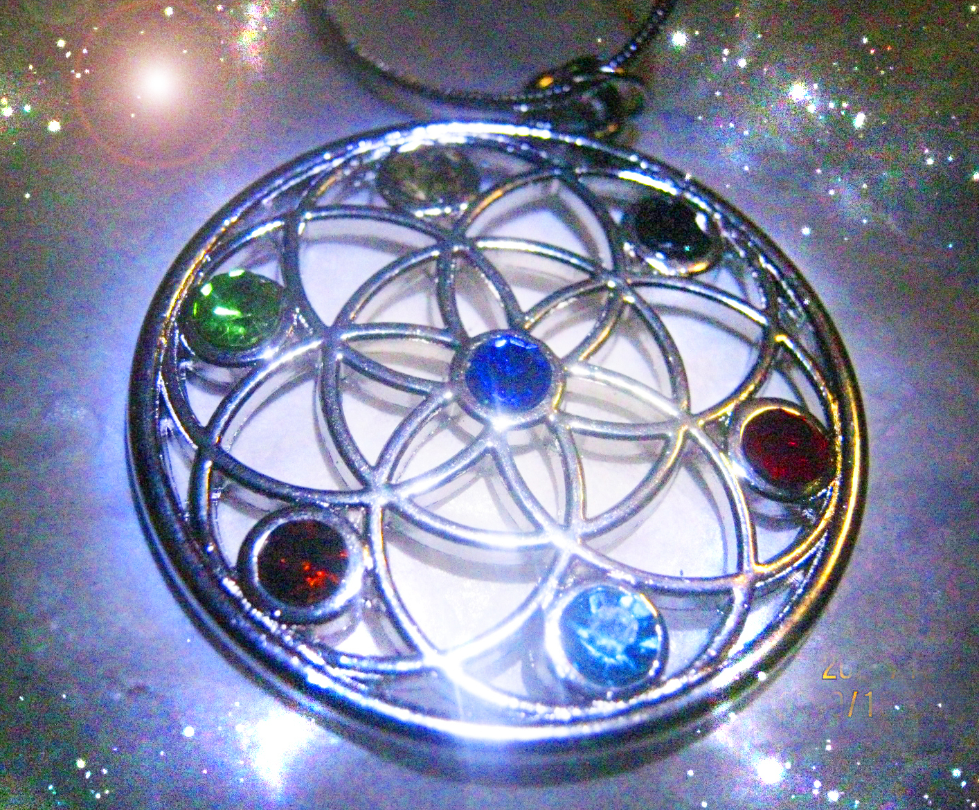 About the NECKLACE: STERLING 1 1/4" IN DIAMETER MULTI GEMSTONE ENERGY MAGNET PENDANT, CHAIN IS 26" WITH A C CLASP CLOSURE