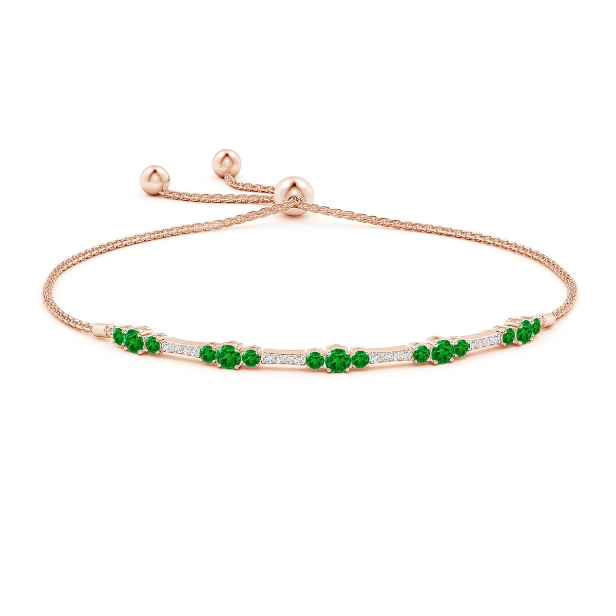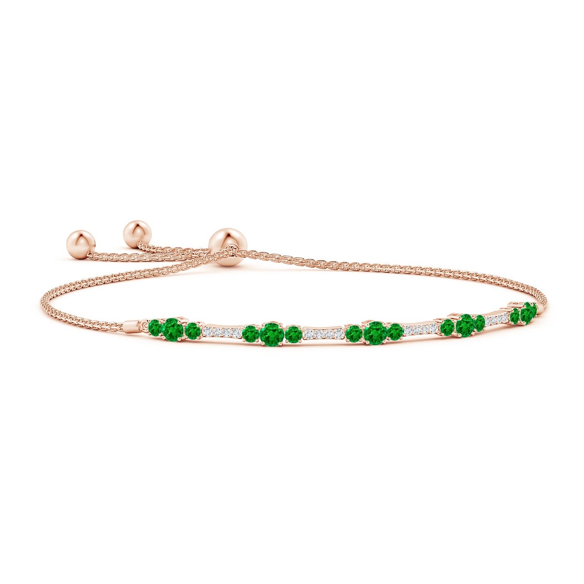 ANGARA Natural 1.52 Ct Round Emerald and Diamond Bolo Bracelet in 14K Solid Gold