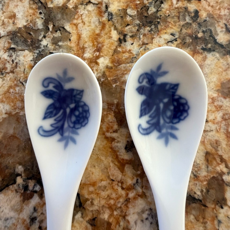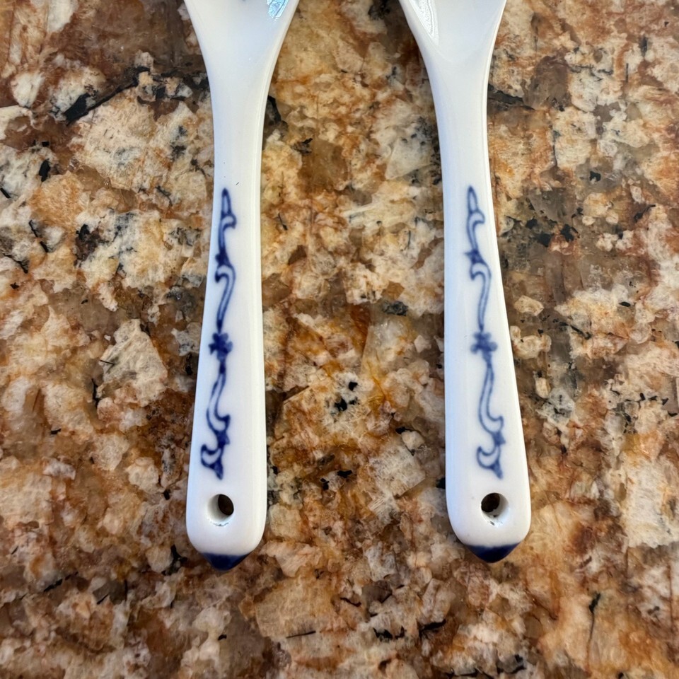 Set of 2 Delft Blue & White Ceramic Condiment Tea Stir Spoon Set